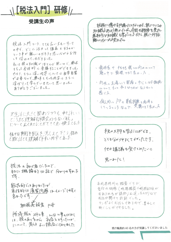 先日行いました「税法入門」のご感想をご紹介します。
